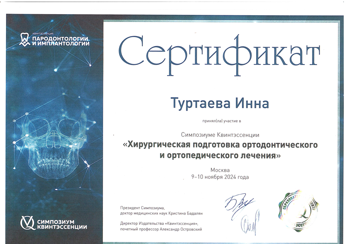 9–10 ноября 2024 года в Москве состоялся Симпозиум Квинтэссенции «Хирургическая подготовка ортодонтического и ортопедического лечения», в котором приняла участие главный врач нашей клиники.